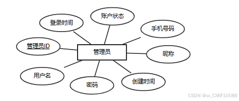 管理员实体包括用户名、登录时间、手机号码。管理员实体如图4-17所示。