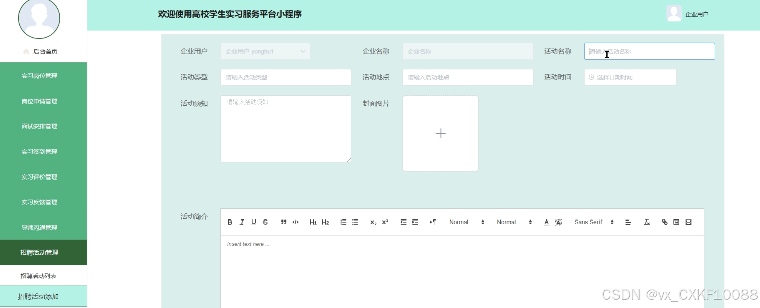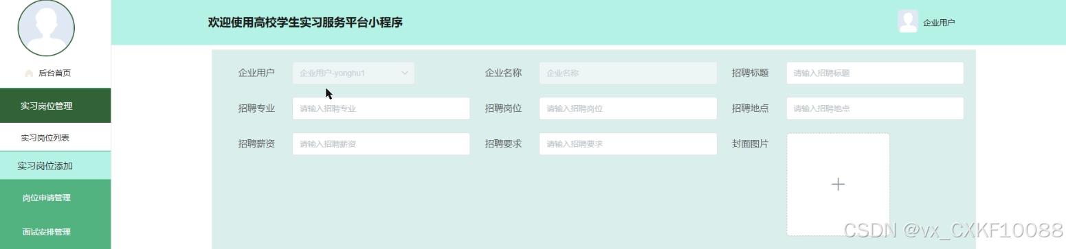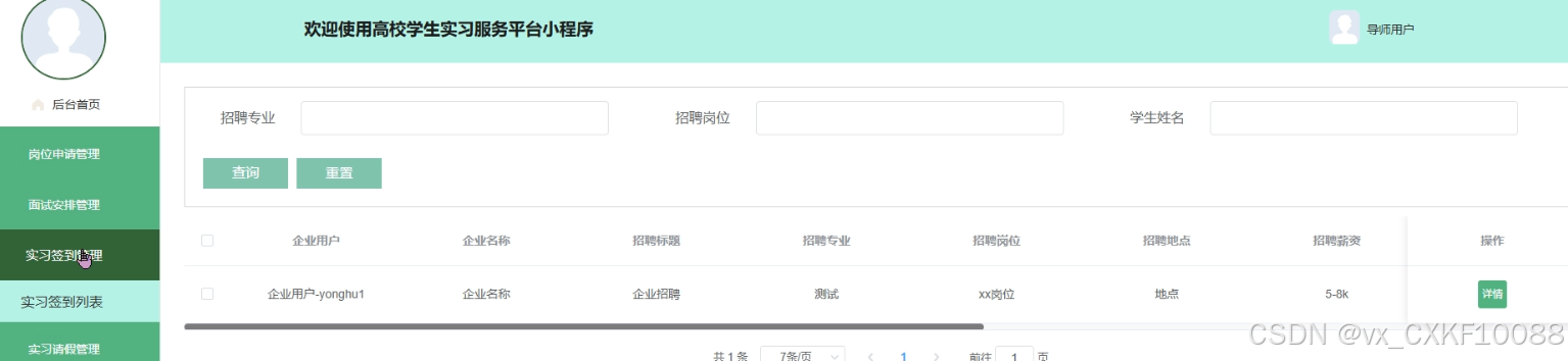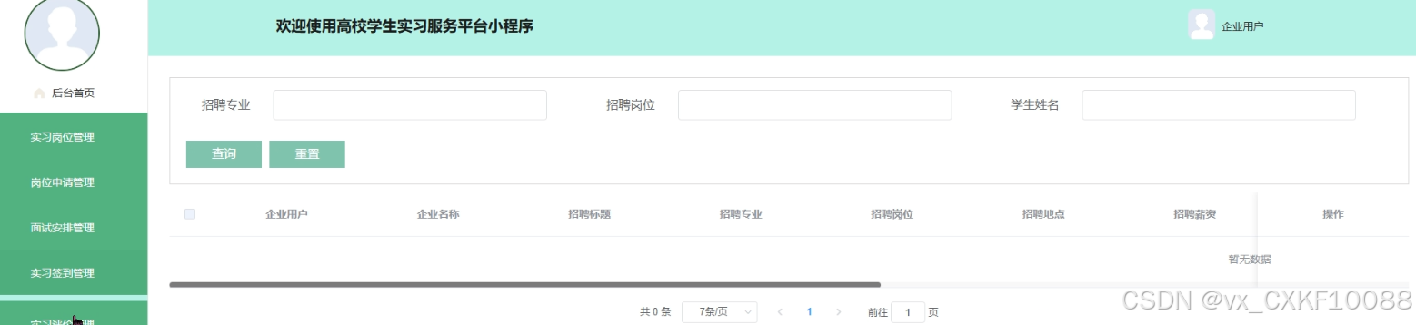 Keywords: Internship services; Mini program; Springboot; MySQL