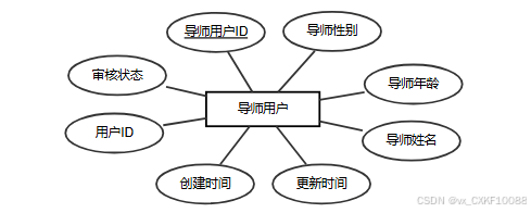 导师用户实体包括导师姓名、导师性别、导师年龄。导师用户实体如图4-15所示。