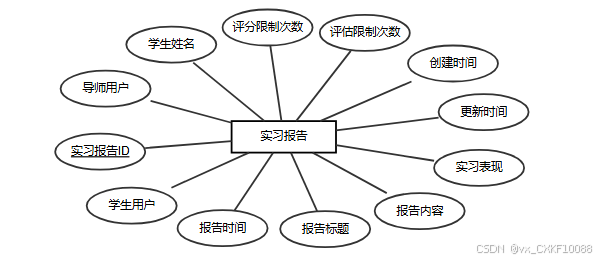 实习报告实体包括报告标题、报告内容、实习表现。实习报告实体如图4-12所示。