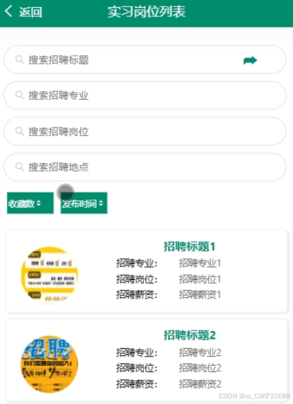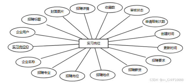 实习岗位实体包括招聘标题、招聘专业、招聘薪资、招聘要求。实习岗位实体如图4-11所示。