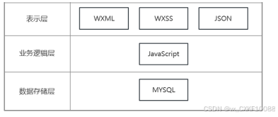 本平台采用分层架构设计,主要有表示层、业务逻辑层和数据存储层。表示层负责用户与系统的交互,使用微信小程序原生框架进行页面设计和用户界面展示。WXML定义页面结构,WXSS负责页面样式,JavaScript处理用户操作及业务逻辑,JSON配置页面和接口。业务逻辑层实现系统的核心功能。该层主要通过JavaScript处理用户请求、业务逻辑判断,并与数据存储层进行交互。数据存储层负责存储和管理系统数据,采用MySQL数据库进行数据存储。数据存储层通过DAO层访问数据库,并提供数据的增删查改操作。整个系统架构如图4-1所示。
