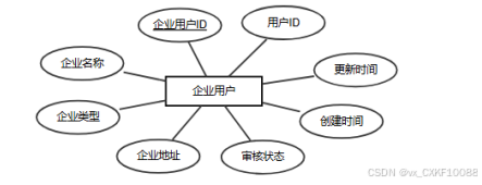 企业用户实体包括企业名称、企业类型、企业地址。企业用户实体如图4-9所示。