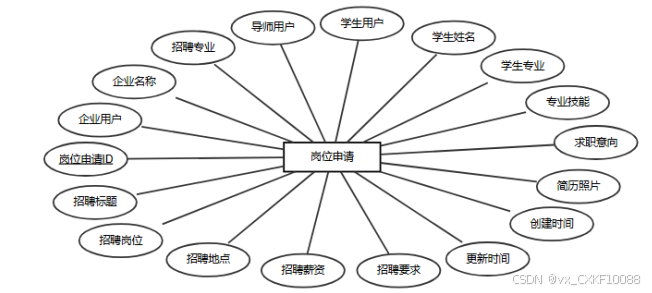 岗位申请实体包括招聘岗位、学生专业、求职意向。岗位申请实体如图4-14所示。
