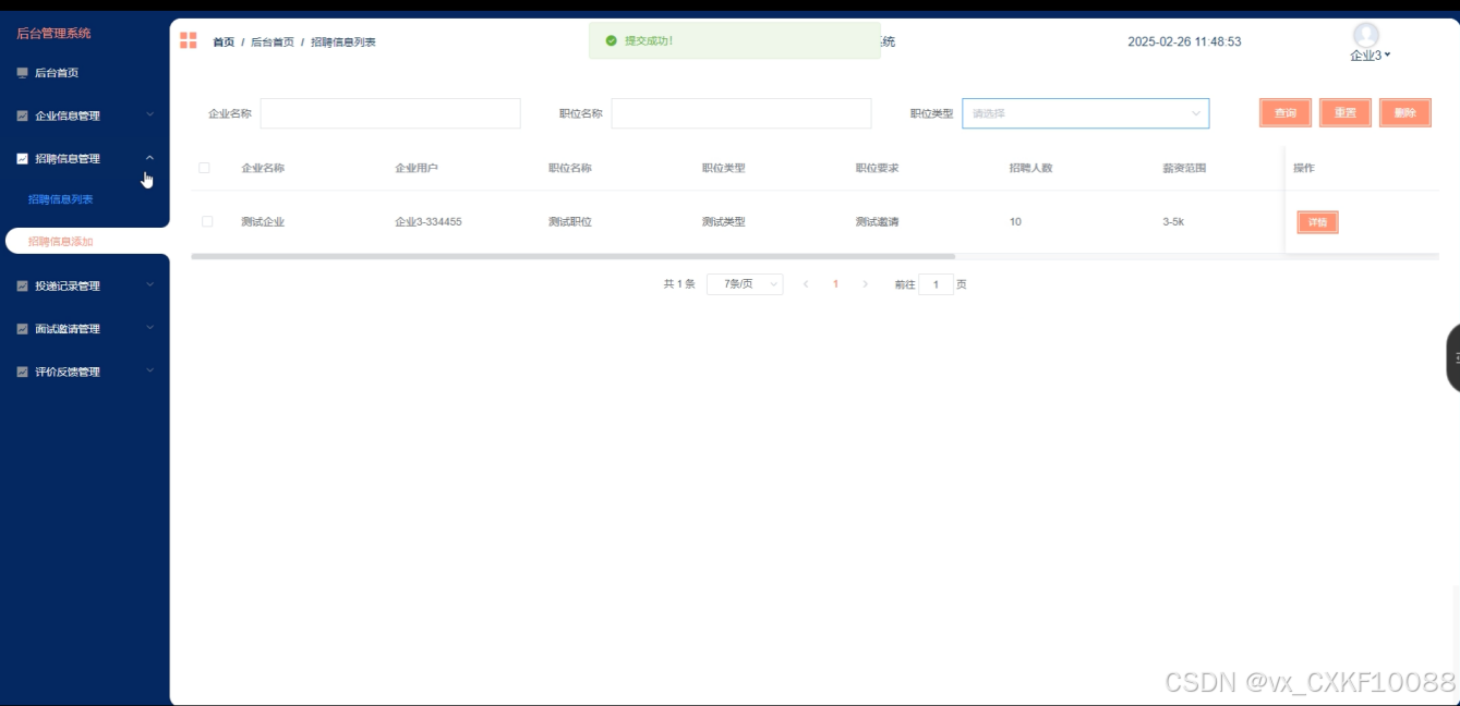 | 测试目的 | 验证招聘信息管理功能 |