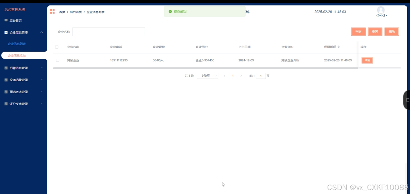 企业信息管理:管理员可以查看和管理注册企业的详细信息,确保信息的准确性和及时更新。