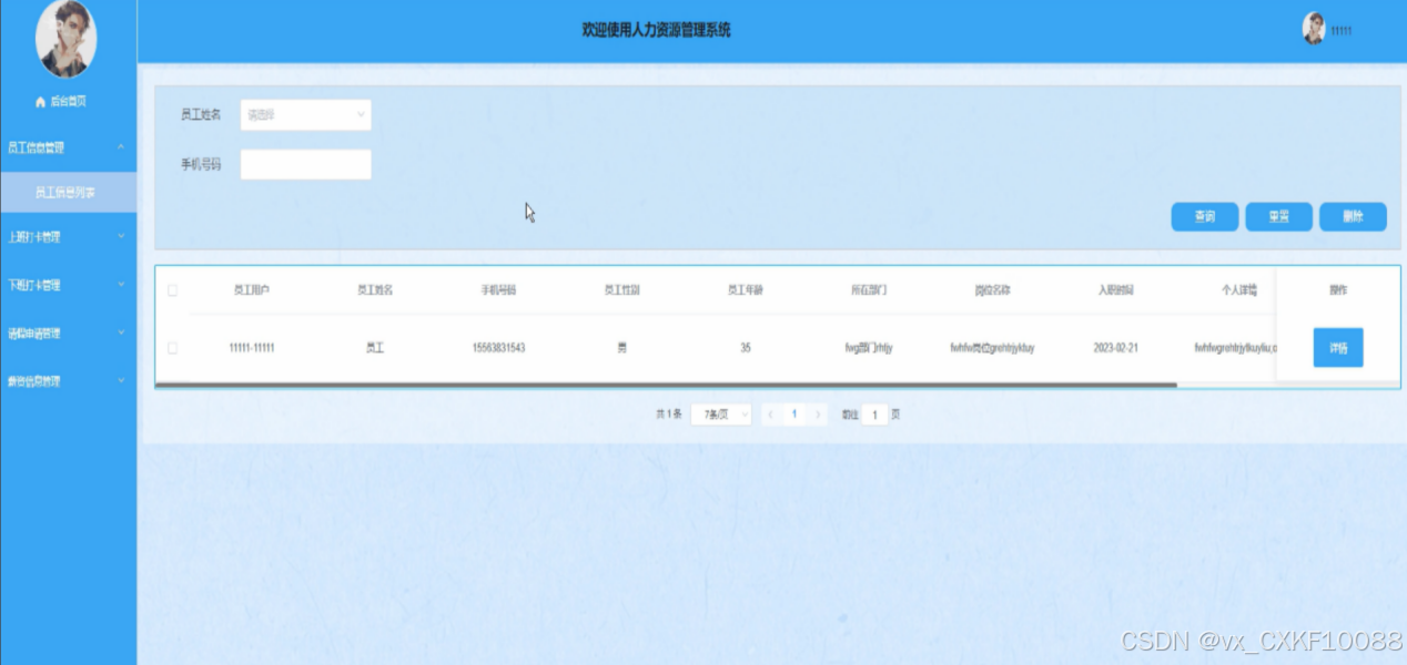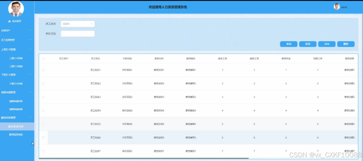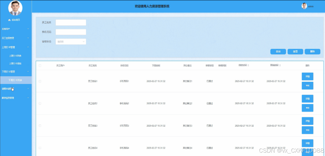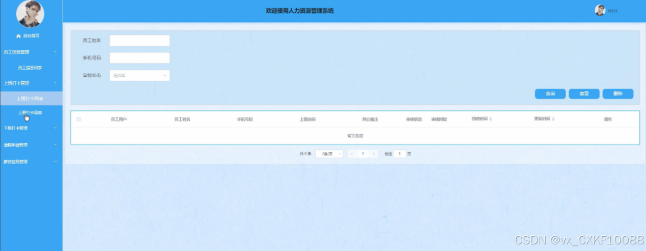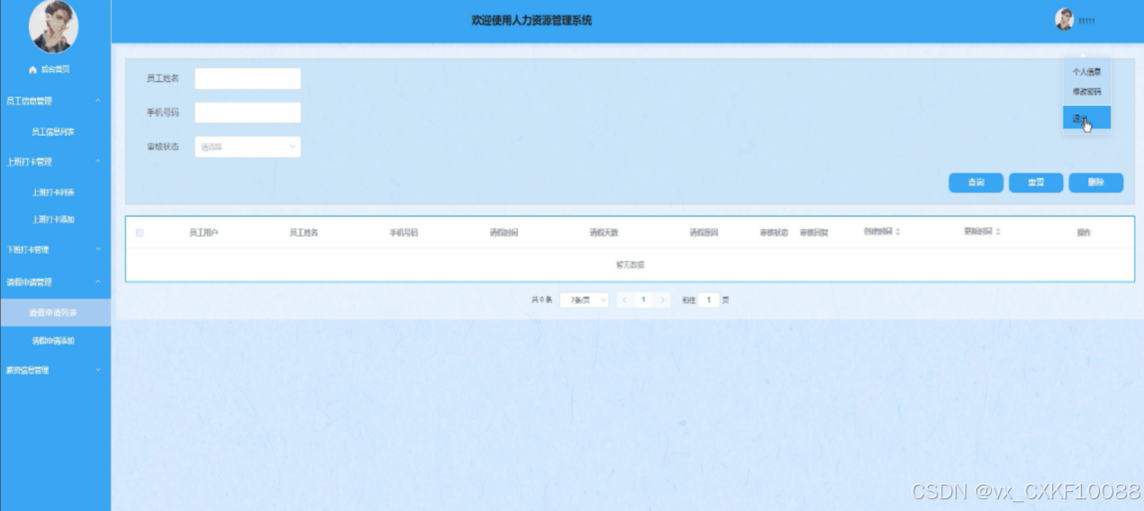Key words: Human resource management system; SpringBoot; Vue; MySQL
