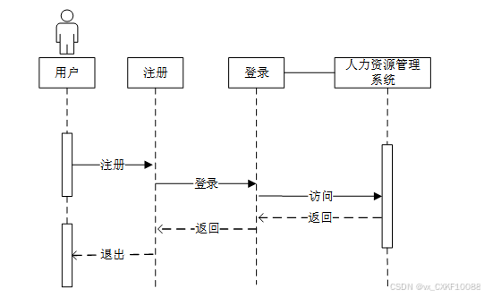 用户通过注册模块发送注册请求,系统完成注册后返回确认信息。随后,用户通过登录模块发送登录请求,系统验证用户信息后允许访问目标系统。用户完成操作后可选择退出,系统终止会话。注册时序图,如图4-3所示。