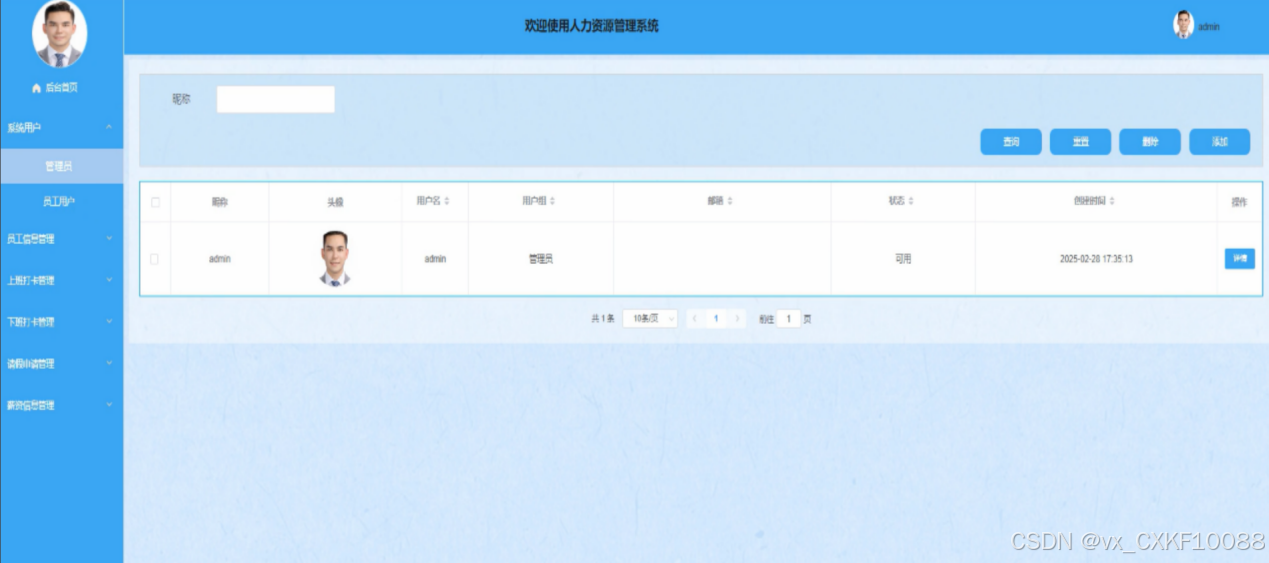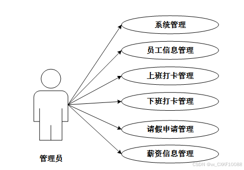 管理员具备全面的系统管理能力,包括用户管理、员工信息管理、考勤管理、请假审批及薪资信息维护等核心功能。