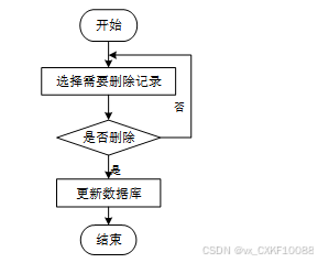 用户选择需要删除的记录后,系统判断是否确认删除。若未确认,返回选择环节;若确认删除,则更新数据库,删除对应记录,完成操作后流程结束。删除信息流程图如图3-8所示。