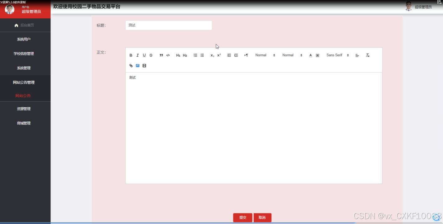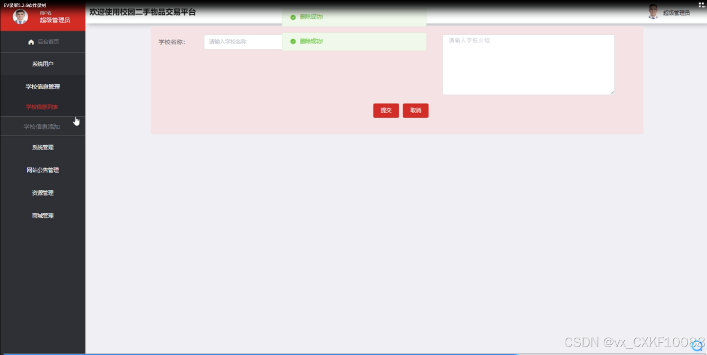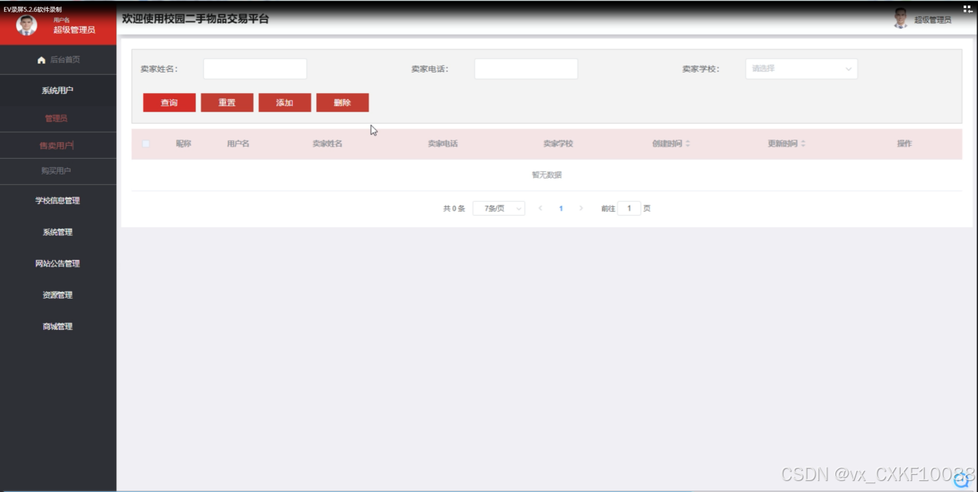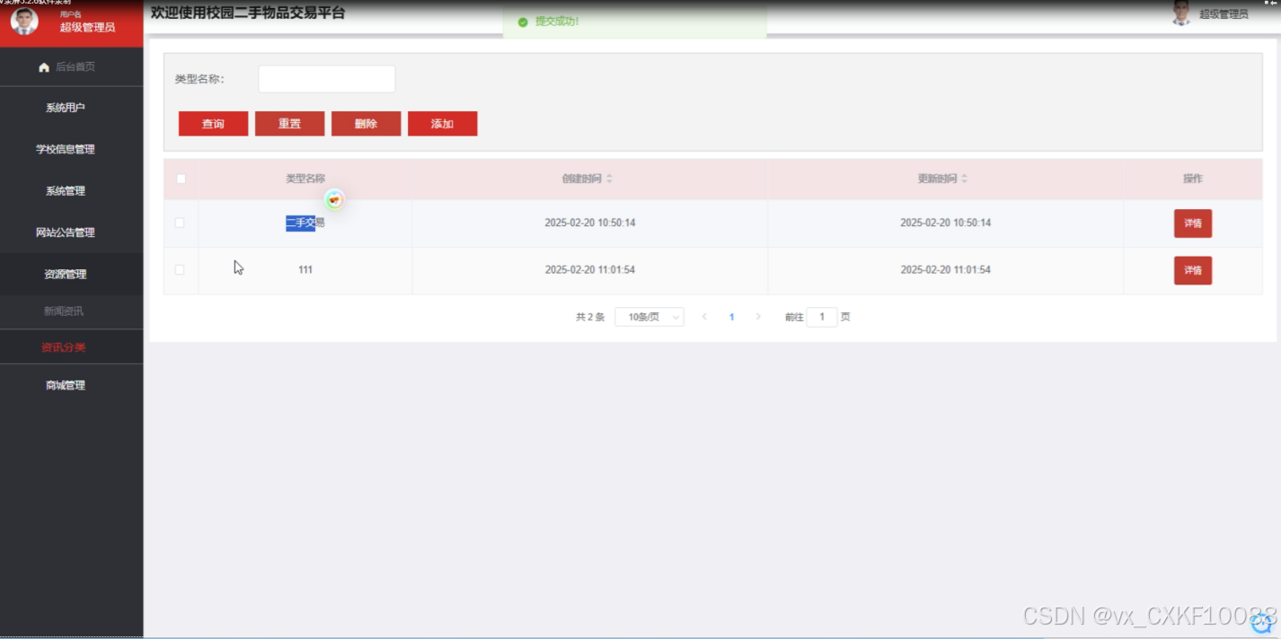 - 系统用户:管理员能够全面管理系统中的用户角色,包括管理员、售卖用户、校园二手物品交易平台用户等,进行用户的查询、重置、添加、删除及详情查看,确保用户信息的准确性和安全性。