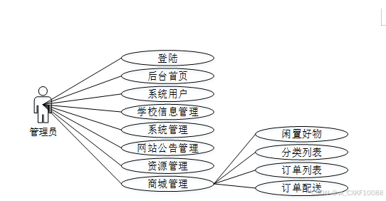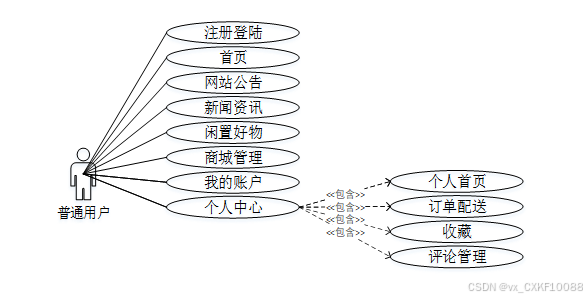图 3-1校园二手物品交易平台普通用户角色用例图