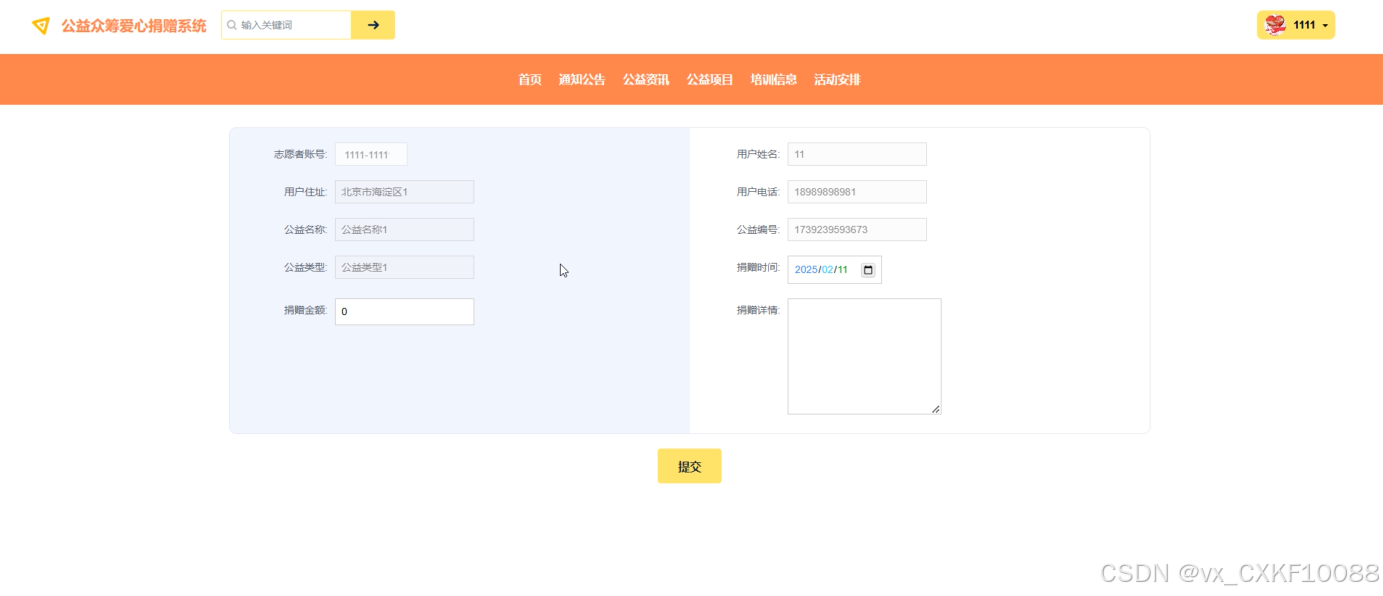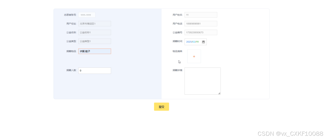 | 预期结果 | 提交以后,页面会显示新的公益项目 |
