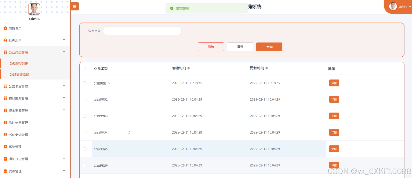 公益类型管理:定义和调整公益项目的类别,便于分类管理和用户筛选。