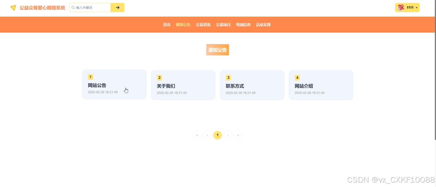 通知公告:发布重要消息和更新,确保用户获取最新公益活动信息。