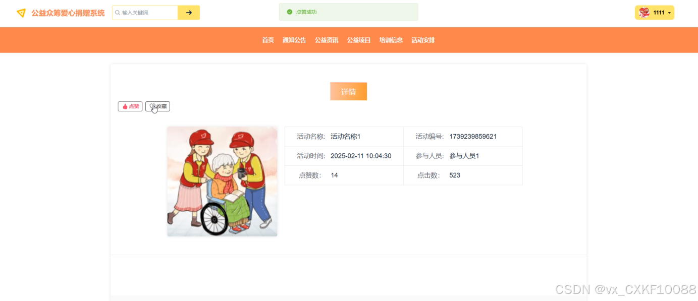 活动安排:显示即将举行的公益活动日程,鼓励用户积极参与线下活动。