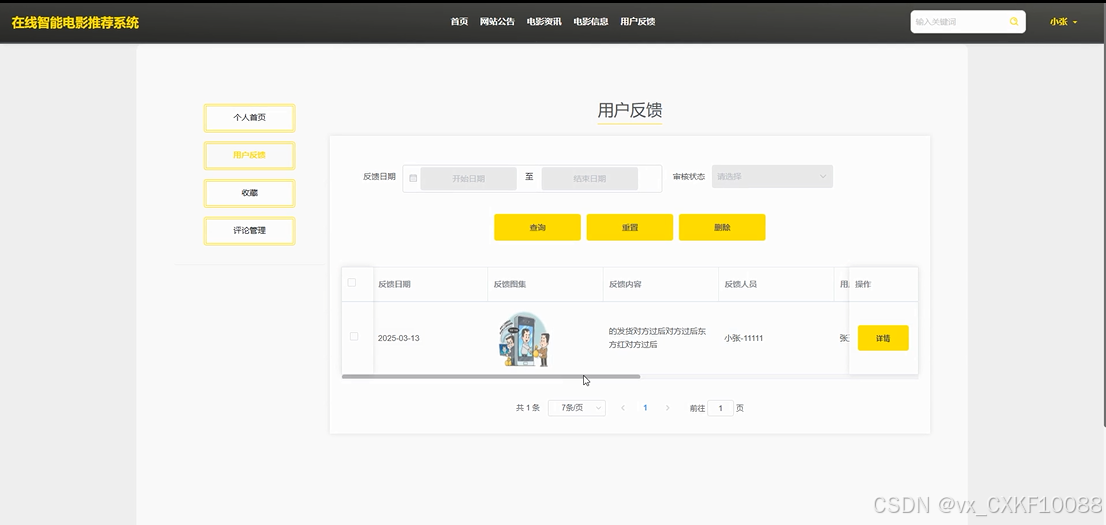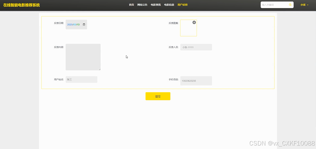 用户反馈:用户可以提交反馈信息,对网站或电影相关的内容进行评价和建议,帮助网站改进和优化用户体验。
