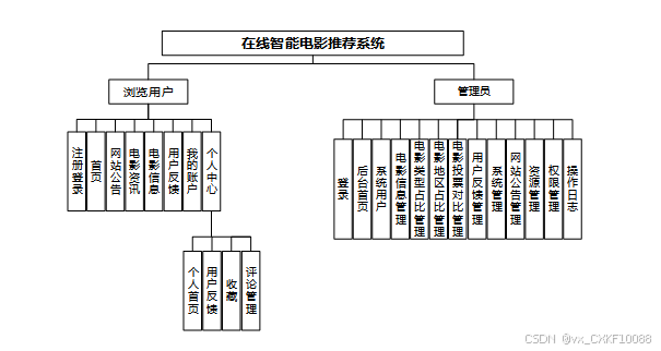 在线智能电影推荐系统划分为了前端模块和后端模块两大部分。