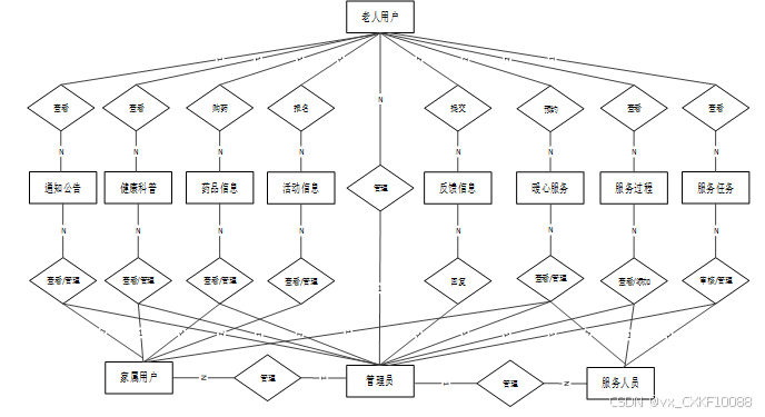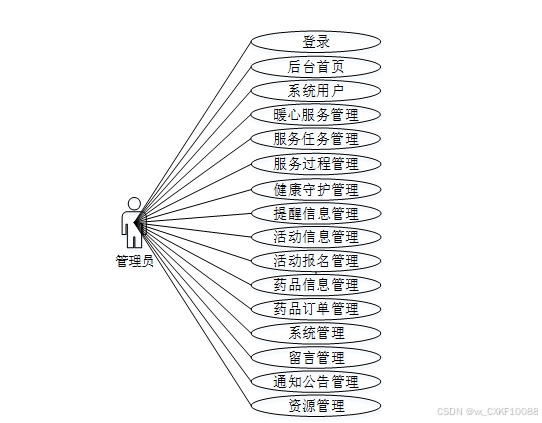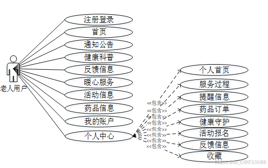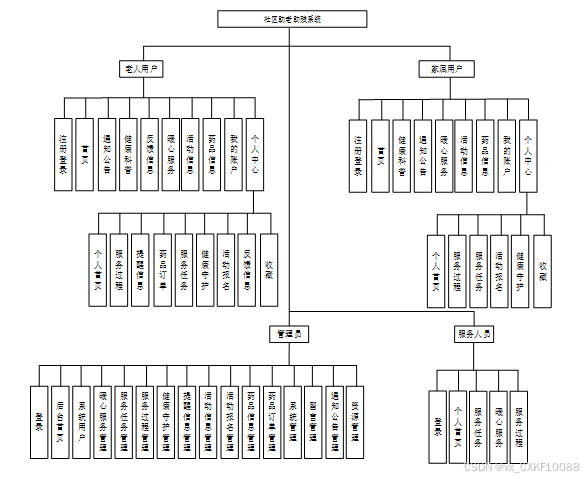在社区助老助残系统主要使用角色分为老人用户、家属用户、服务人员以及管理员。