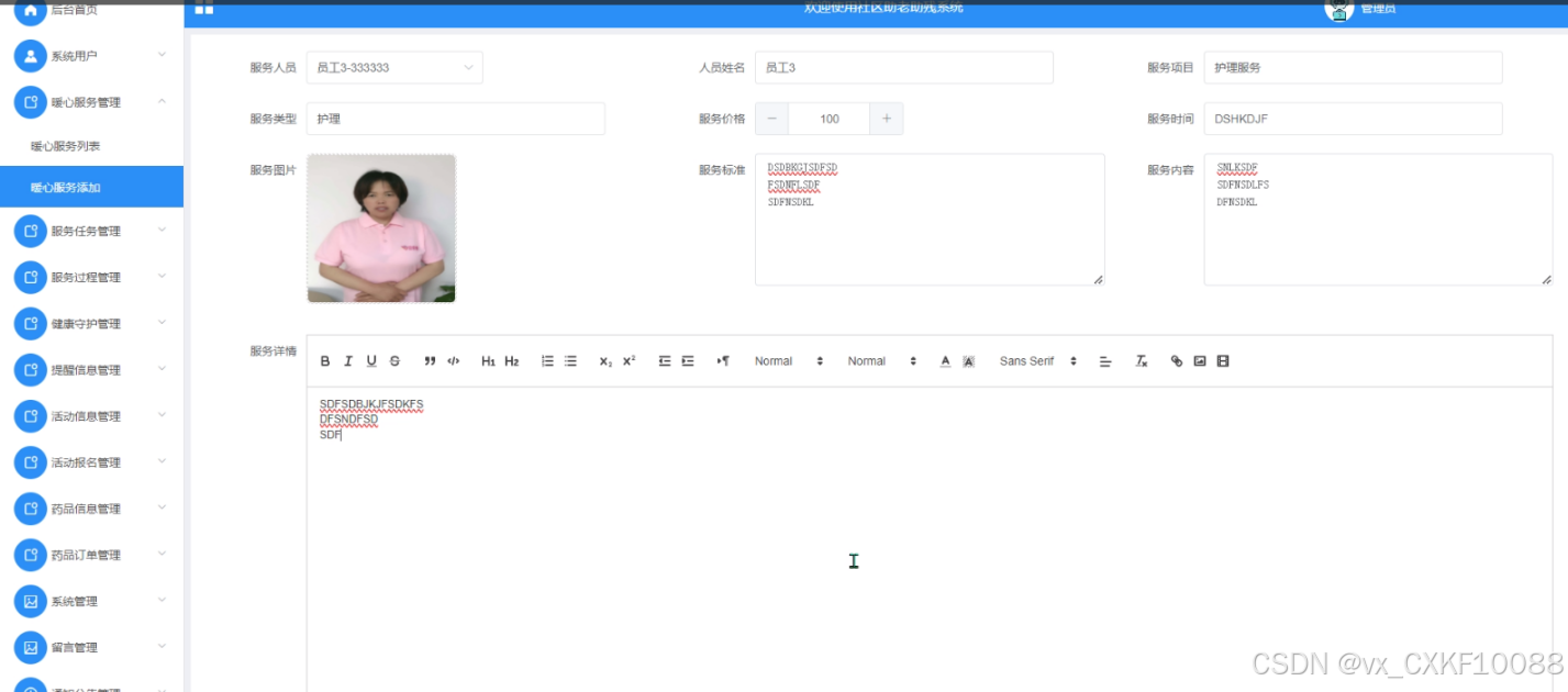暖心服务管理:提供查询、重置、删除和添加服务的功能,管理员可以查看用户对服务的评论,以便了解服务质量和用户满意度。