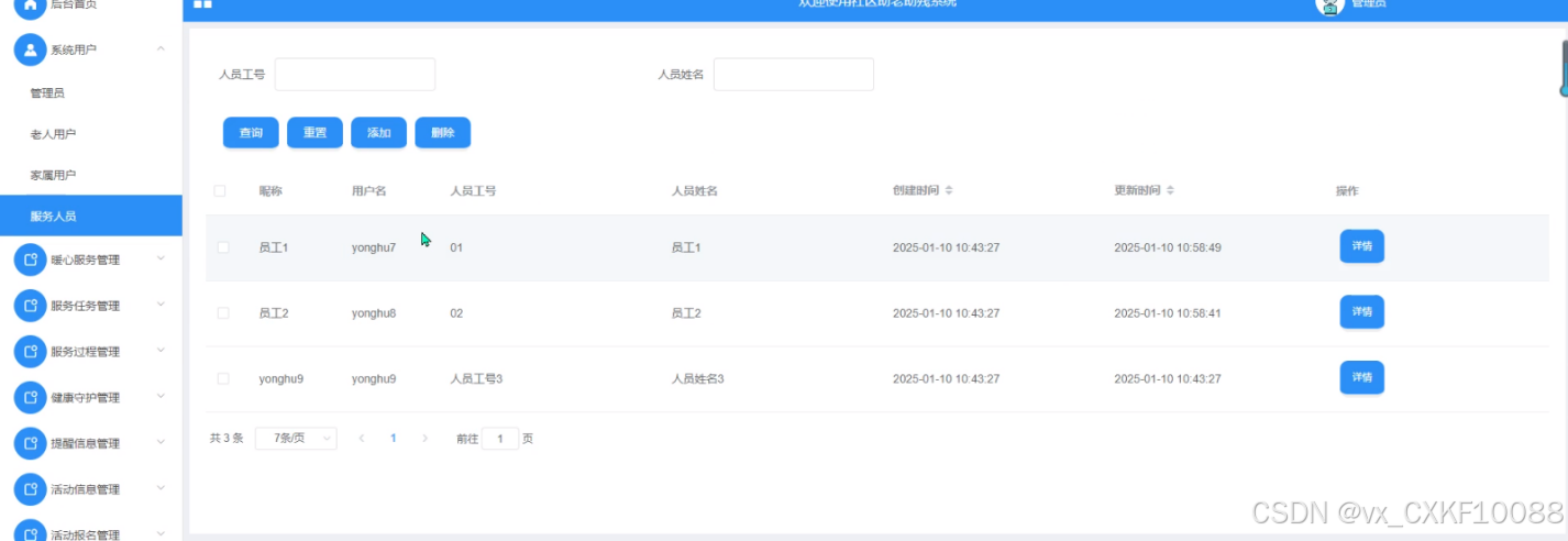 通过开发基于SpringBoot+Bootstrap框架的社区助老助残系统,能够实现全方位的服务和管理,提升老年人和残障人士的生活质量。系统能够帮助管理员、老人用户、家属用户和服务人员进行高效的互动与管理,从而确保暖心服务的提供、健康守护的落实和各类任务的高效完成。