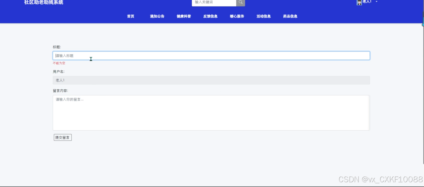 反馈信息:老人用户可以通过反馈信息栏目向平台提出建议或报告问题,管理员将及时处理并给予回复。