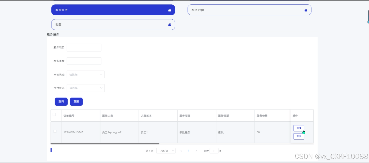 服务任务:服务人员可以查看由系统分配给自己的服务任务列表,并对任务进行审核。审核功能允许服务人员确认任务详情无误后,标记任务为已审核状态,确保服务流程的顺利进行。