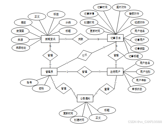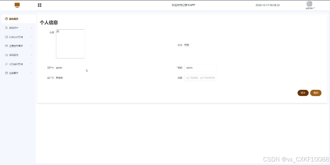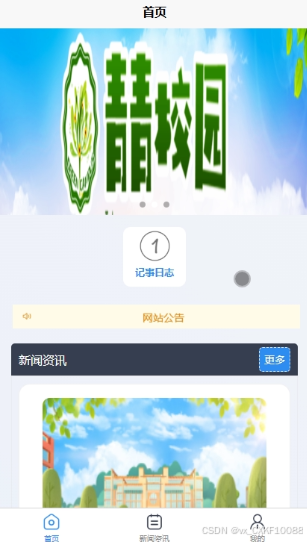 - 首页:用户登录系统后首先进入首页界面,可查看轮播图、公告通知、新闻资讯等系统概览和推荐信息,并提供记事日志等系统功能入口子菜单。