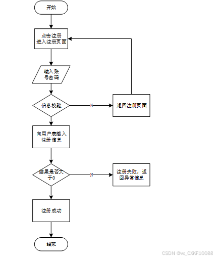 注册的过程,第一部分是账号的注册,第二部分是信息完善。在业务开展过程中,管理员可对用户信息进行修改等管理操作,注册流程如图3-3用户注册流程图所示。