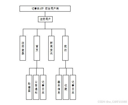 通过对应的功能做了需求分析以后该记事本APP各角色主要包括的功能说明如下: