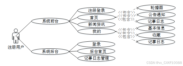 - 注册用户角色:可在系统前台进行注册,同时登录系统前后台。