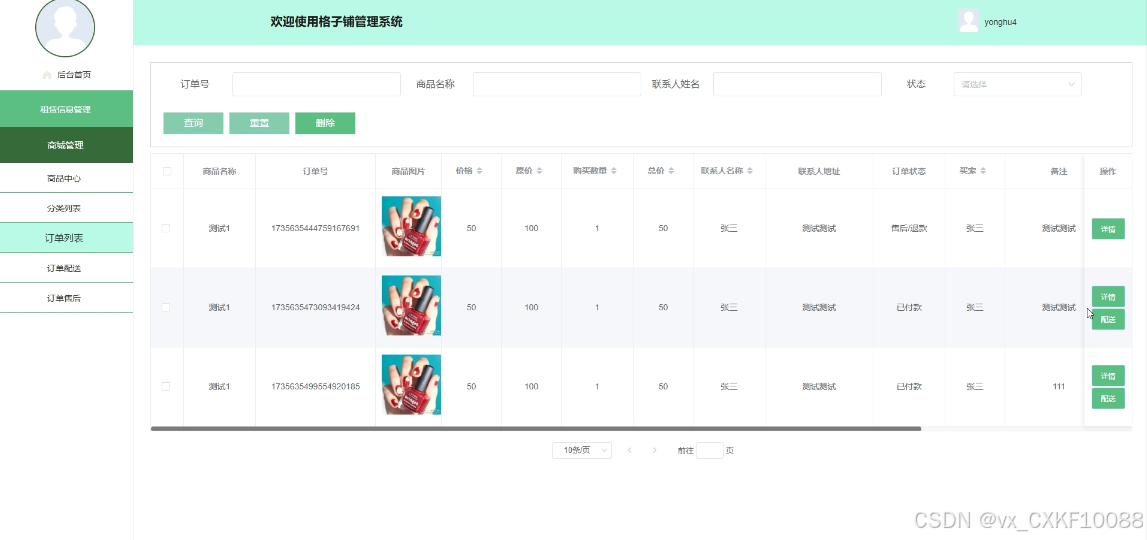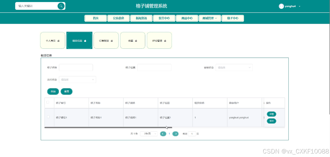 - 租赁信息管理:商家用户可搜索和浏览自己的租赁信息,提供支付功能。