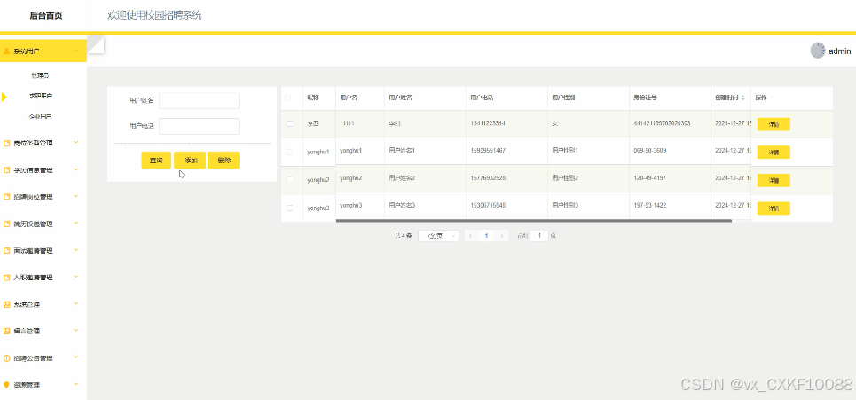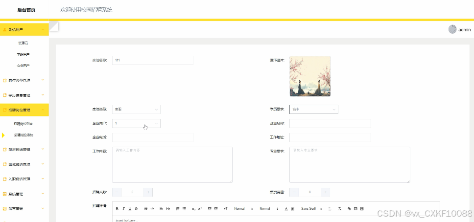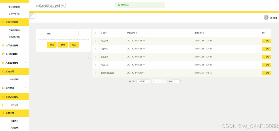 管理员可以发布、编辑和删除招聘的通知和公告,确保信息的及时性和准确性。其界面如下图所示。