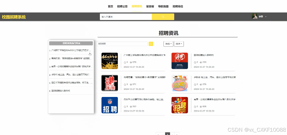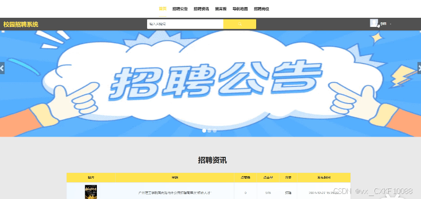 首页:展示校园招聘系统的欢迎页面及重要信息概览。