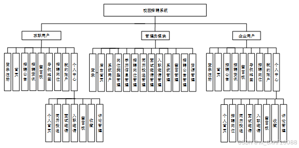 校园招聘系统通过不同角色的功能模块,实现对校园招聘服务的全面管理。求职用户、企业用户和管理员各自的功能模块互相配合,共同构建了一个高效、透明的校园招聘服务管理体系。通过详细分析这些功能模块,可以帮助企业更好地理解和实施校园招聘服务管理系统,提高校园招聘服务管理的效率和准确性。具体功能分析如下: