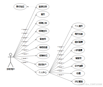 登录注册:允许求职用户注册新账户或使用已有账户登录系统。