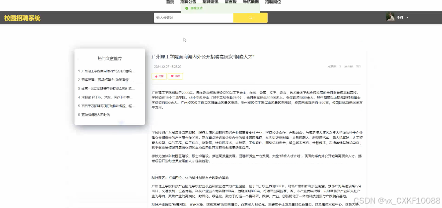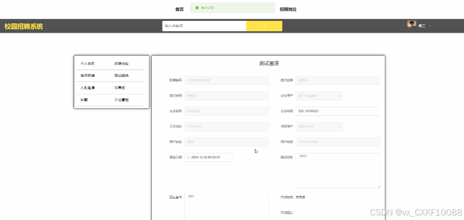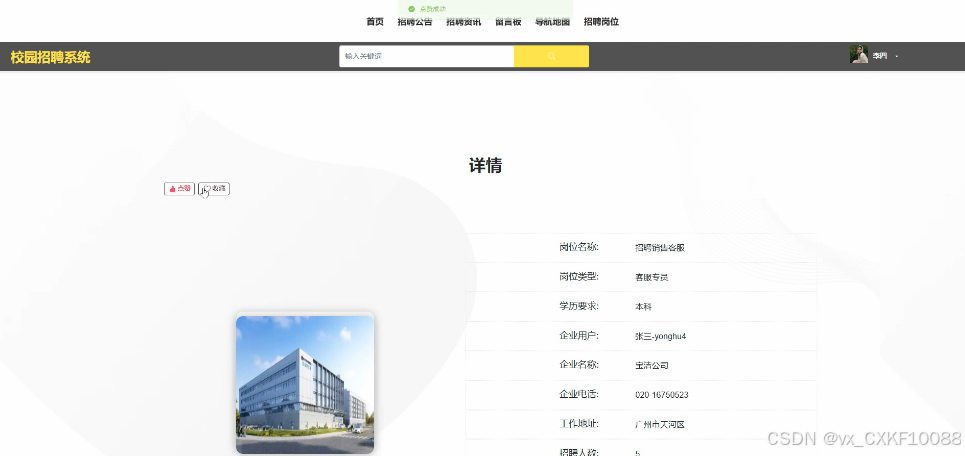 The development of the system not only improves the efficiency and accuracy of campus recruitment, but also provides students with a more convenient and personalized job-hunting experience. In the future, we will continue to improve the system functions, optimize the user experience, and contribute to the building of a more open and transparent job market.