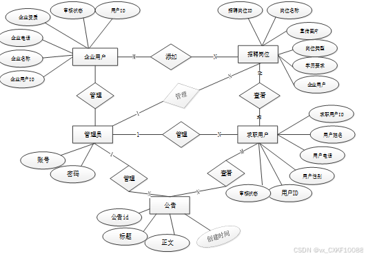 系统用户:管理所有系统用户(求职用户、企业用户、管理员)的信息。