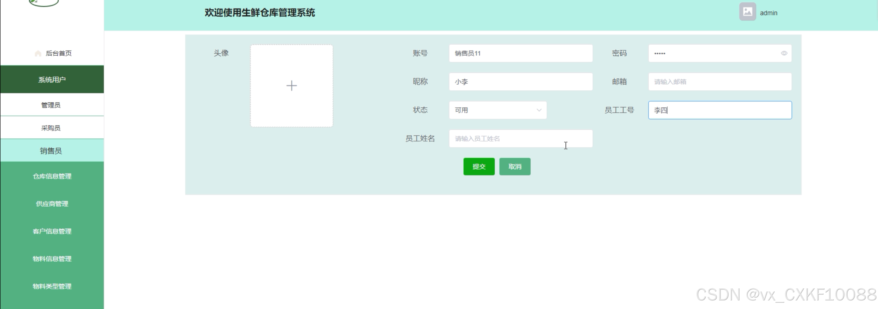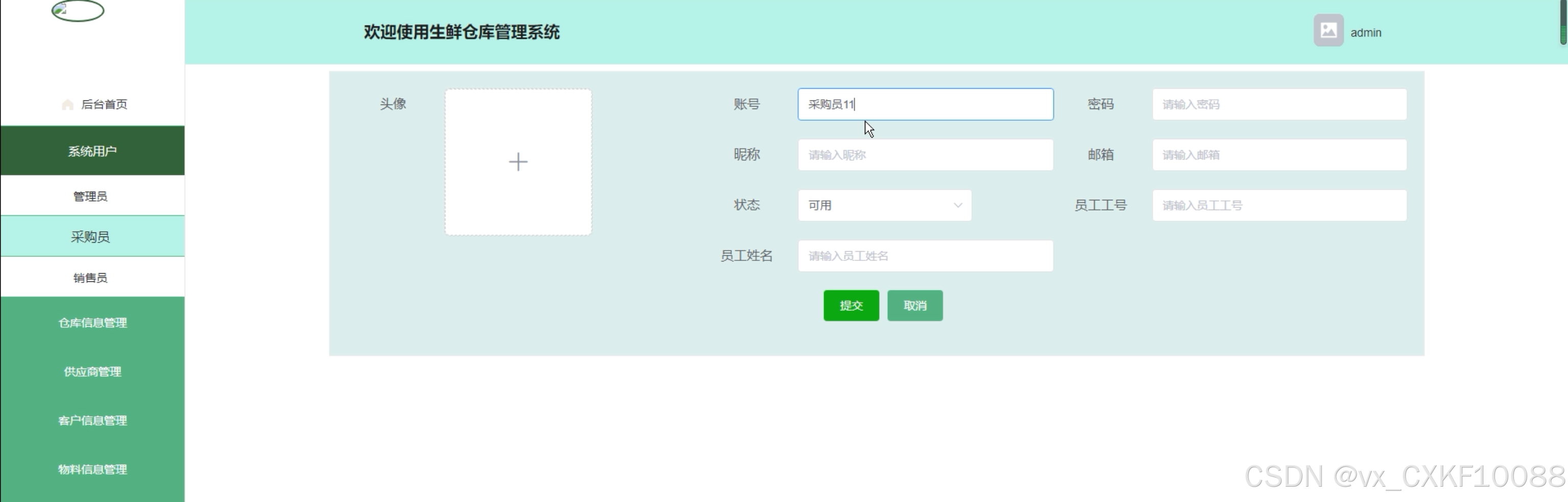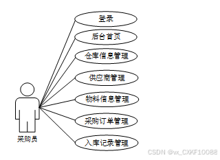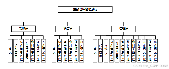 生鲜仓库管理系统包含采购员、销售员、管理员三个角色划分,每个角色对应的主要功能如下: