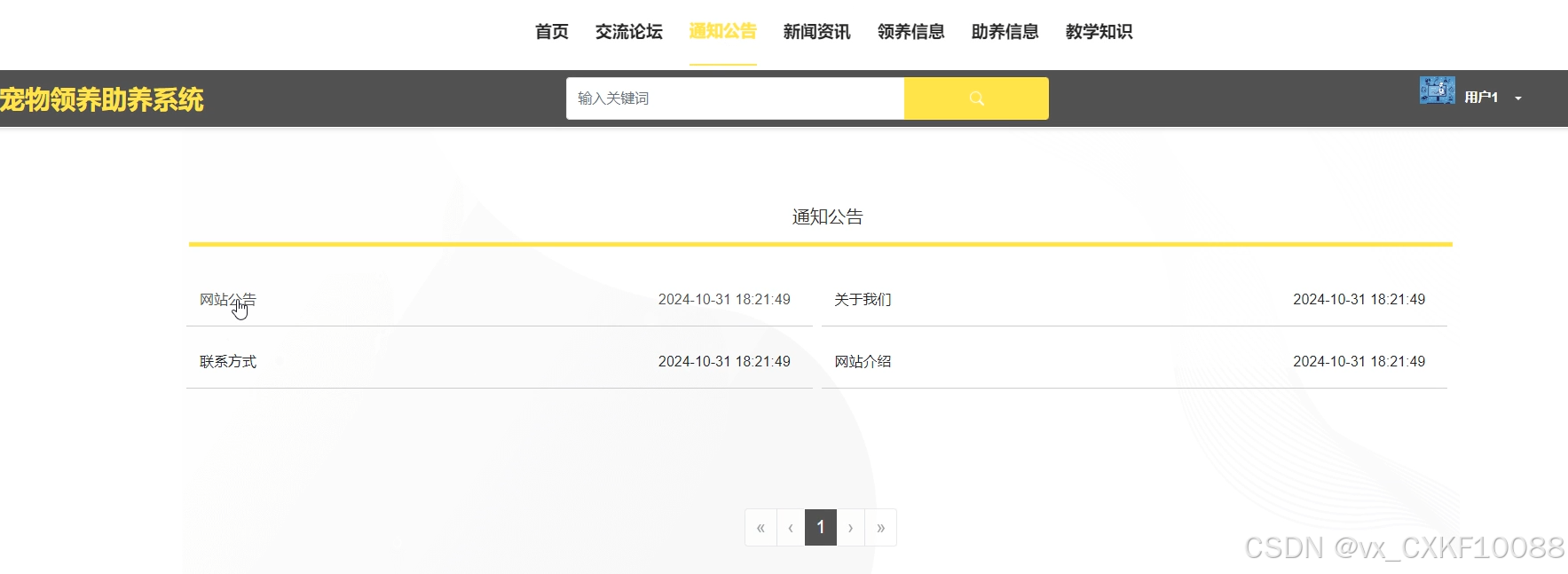 基于Web的宠物领养助养系统以为用户和管理员提供便捷的宠物领助养交互平台为主要目标,使用户能够轻松进行宠物领养和助养申请,并提供助养教学服务,为管理员提供有效的宠物管理和领养审核功能。本研究采用Java作为开发编程语言,Spring Boot作为后台框架,MySQL作为数据库,以B/S架构实现Web应用。系统的开发流程包括需求分析、系统设计、实现及测试,通过模型设计和数据表结构设计,合理构建数据库,同时利用Spring Boot框架简化后台开发,提升开发效率。
