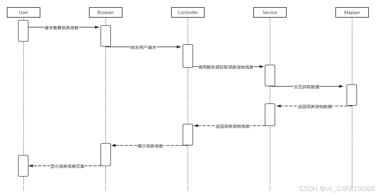 学术界对宠物领养助养系统的研究逐渐增多。2021年周粉妹等在《基于SSM的宠物领养网站设计》中探讨了采用SSM框架设计宠物领养网站的前后台模块及数据库,强调了B/S结构的优势[4] 。该系统不仅使管理员能够在线发布宠物信息,还提供了管理订单及留言咨询的功能,用户则可以通过注册成为会员,登录后查询领养宠物、购买宠物食物、预定服务等。这种设计充分考虑了用户的需求,使得宠物领养过程更加高效便捷。2022年吴文洋和刘世宇在《基于B/S架构宠物领养管理系统设计》一文中指出,随着经济的发展,宠物饲养逐渐普及,促使宠物管理系统的需求增加[5] 。他们提出的管理系统利用B/S结构,通过高效、便捷的方式为用户提供公益性领养平台,减少流浪宠物数量并增强公众的动物保护意识。这种公益性平台的建立,既满足了人们的养宠需求,也对宠物市场的管理起到了积极作用。