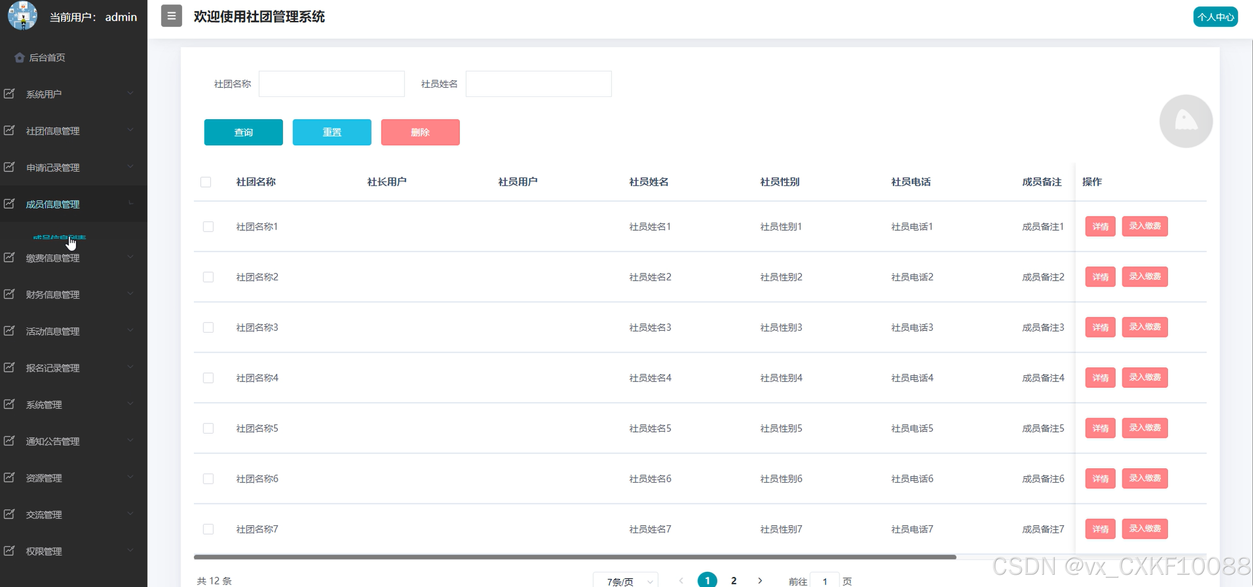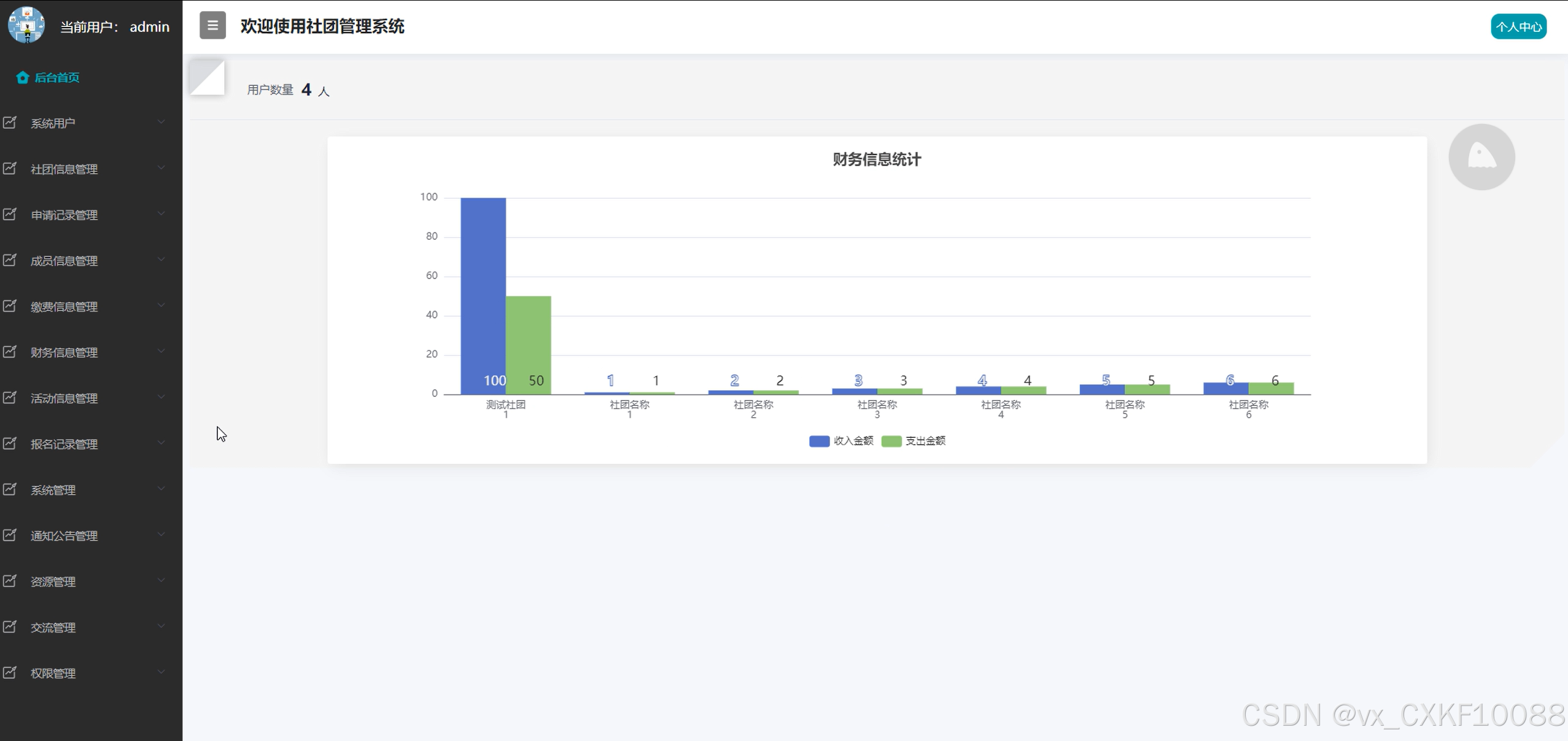 - 财务管理:为社团提供收入和支出记录功能,包括会费收取、活动预算和财务报告,确保资金透明和合理使用。