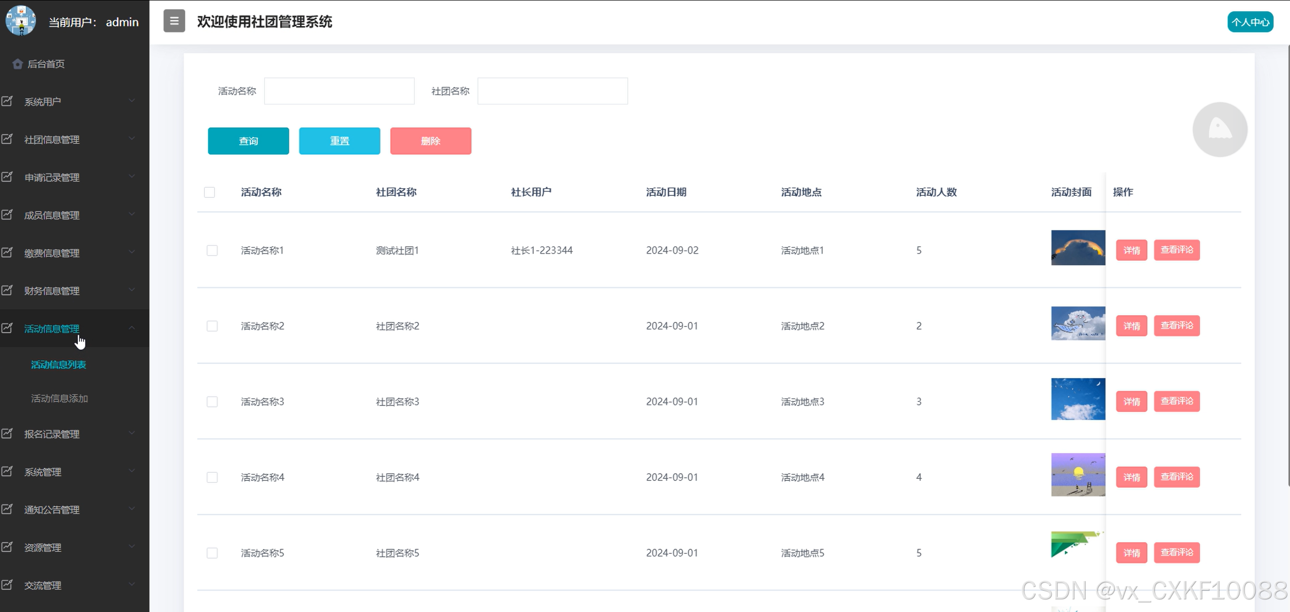 - 活动信息管理:使社长能够创建、发布和取消社团活动,同时管理活动细节和参与名单,确保活动顺利进行。