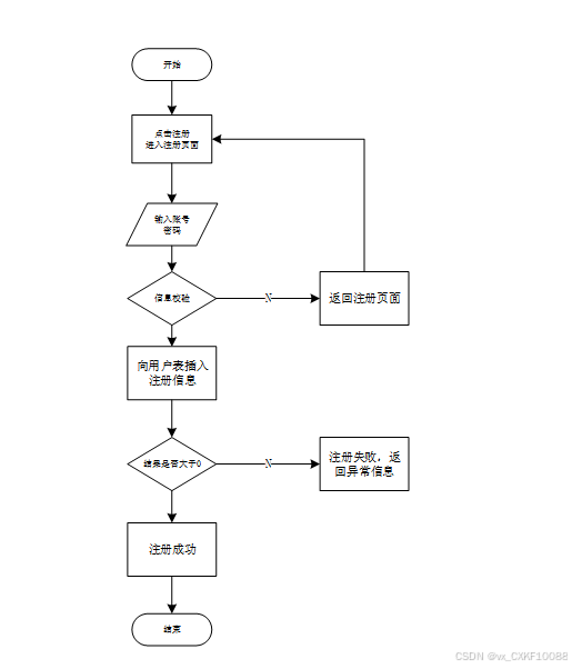 注册的过程,第一部分是账号的注册,第二部分是信息完善。在业务开展过程中,管理员可对用户信息进行修改等管理操作,注册流程如图3-4用户注册流程图所示。