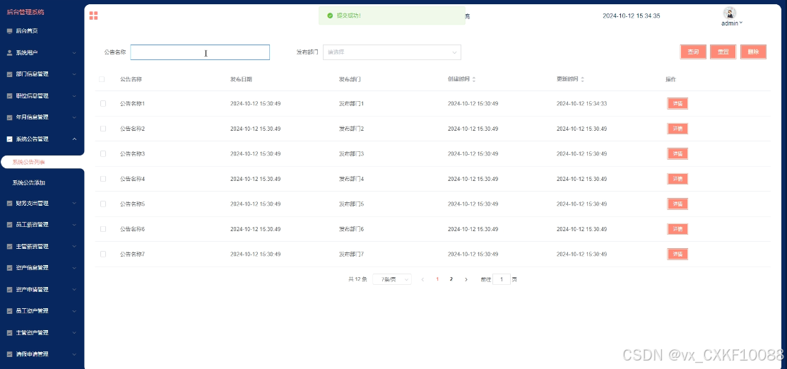 - 系统公告管理:主管用户可搜索和浏览系统公告信息。
