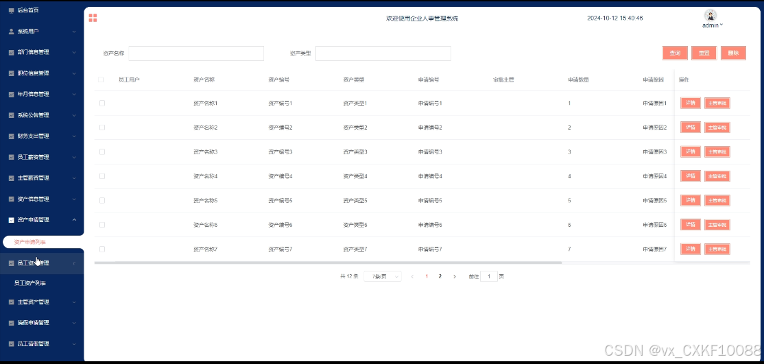 - 资产信息管理:主管用户可搜索和浏览所有资产信息,提供主管申请操作。