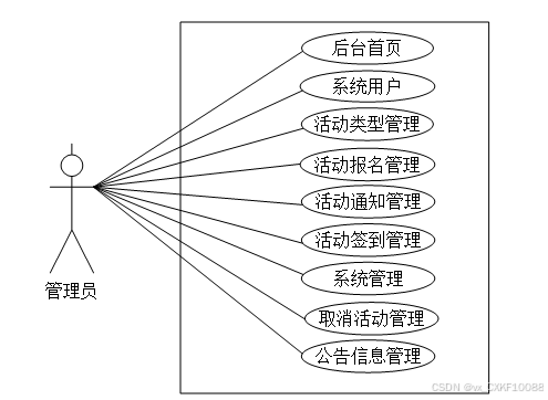 通过构建用例图,来更好的展示出管理员这个角色所有的功能,如下。