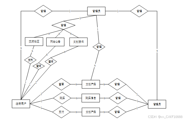 基于SpringBoot的中国文创管理系统用例分析主要从注册用户、管理员这些实体展开描述。