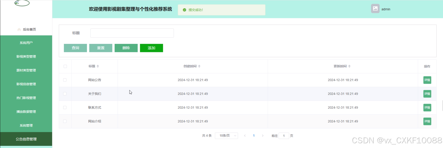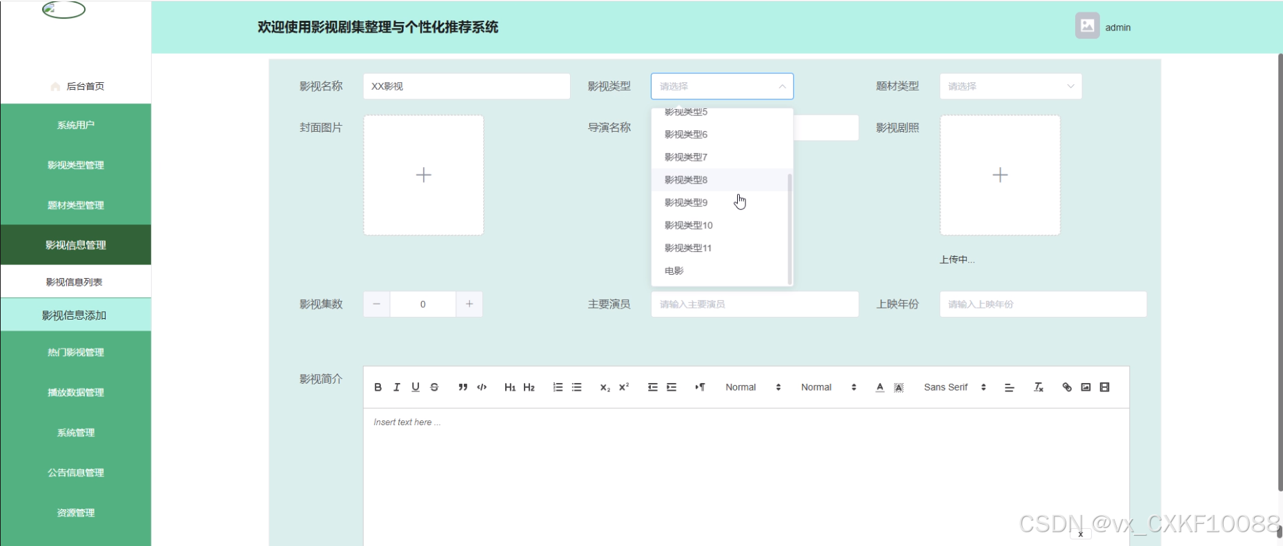该系统的建立不仅满足了用户对高质量、个性化影视内容的需求,还为影视行业的数字化转型提供了强有力的支持。