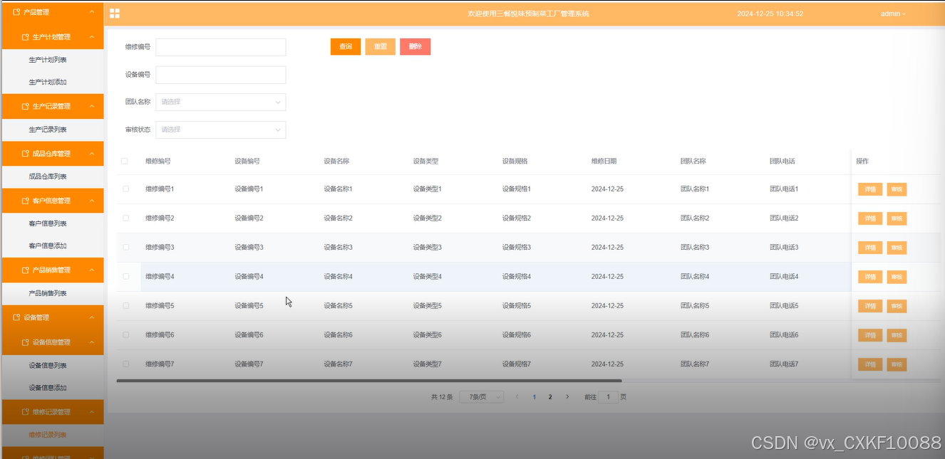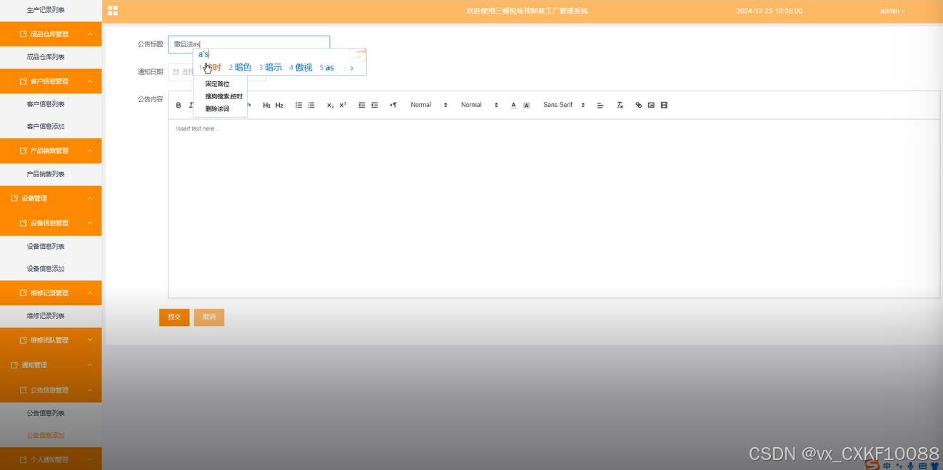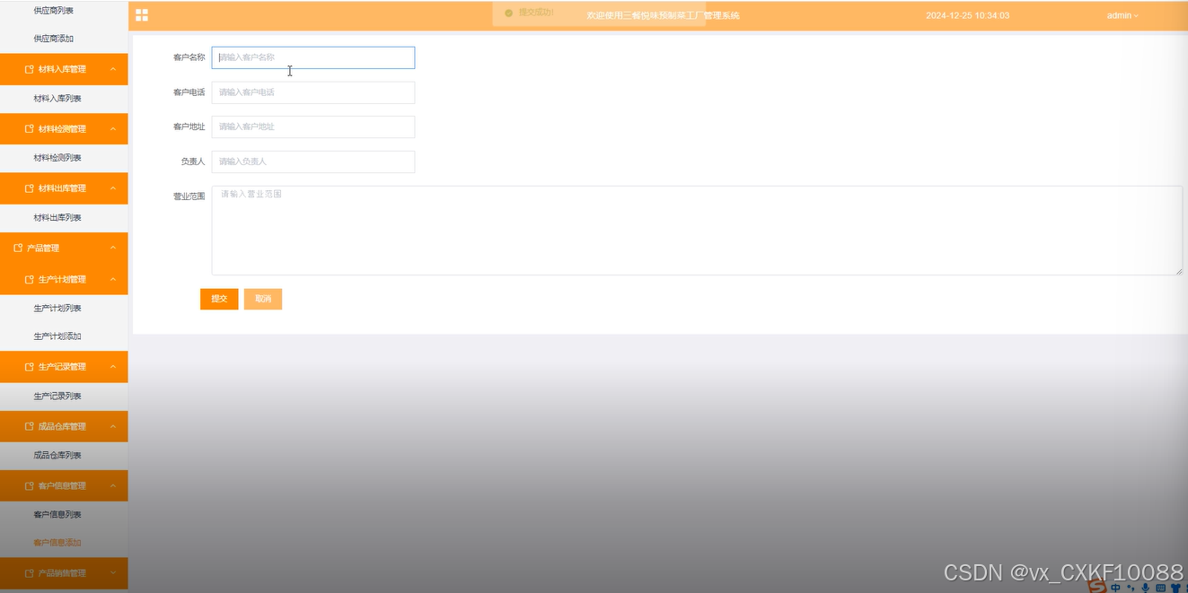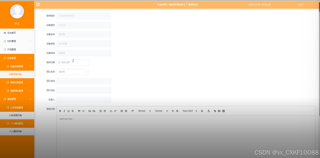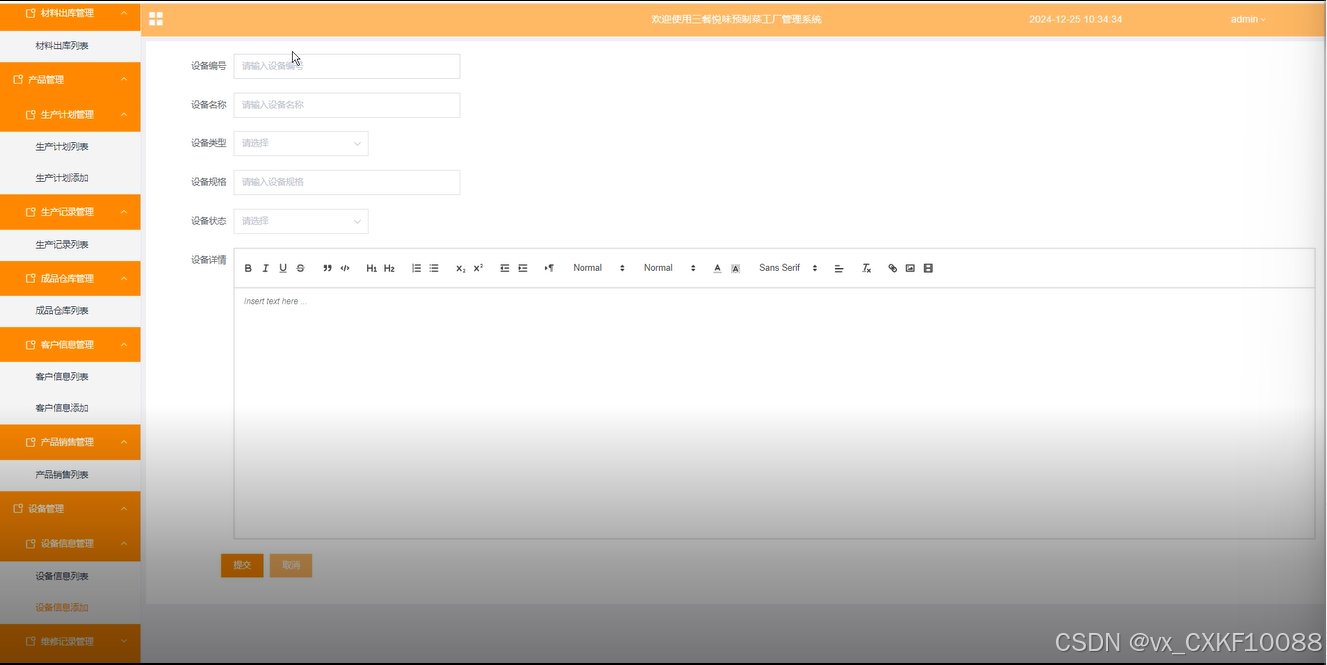 关键词:预制菜;Spring Boot;生产管理;材料管理;设备管理;后台管理